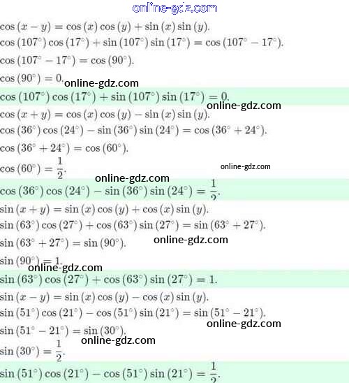 Готовые домашние задания по Алгебре за 10 класс Задачник Мордкович, Семёнов Базовый и углубленный уровень 2017 - §24. Синус и косинус суммы и разности аргументов 24.17