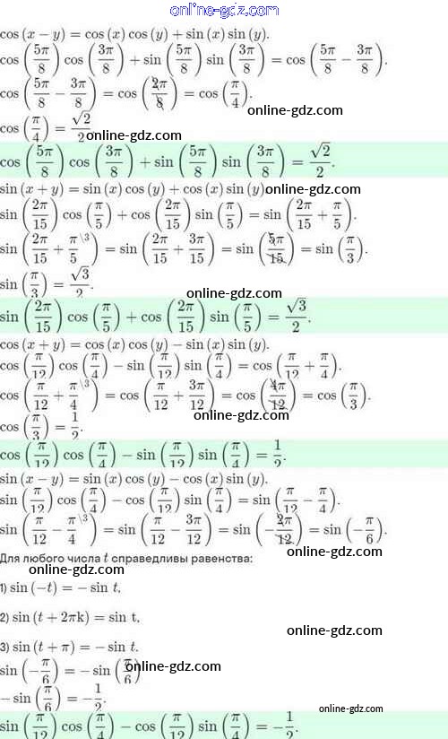Готовые домашние задания по Алгебре за 10 класс Задачник Мордкович, Семёнов Базовый и углубленный уровень 2017 - §24. Синус и косинус суммы и разности аргументов 24.18