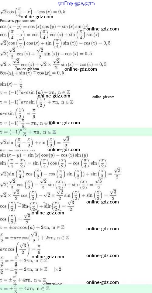 Готовые домашние задания по Алгебре за 10 класс Задачник Мордкович, Семёнов Базовый и углубленный уровень 2017 - §24. Синус и косинус суммы и разности аргументов 24.25