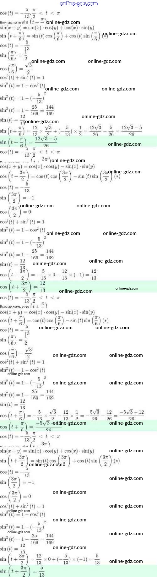 Готовые домашние задания по Алгебре за 10 класс Задачник Мордкович, Семёнов Базовый и углубленный уровень 2017 - §24. Синус и косинус суммы и разности аргументов 24.29