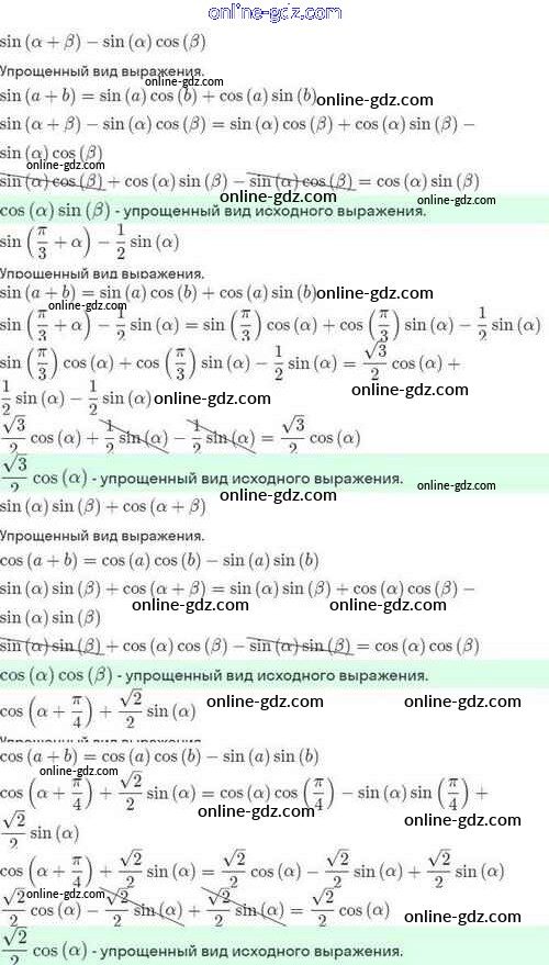 Готовые домашние задания по Алгебре за 10 класс Задачник Мордкович, Семёнов Базовый и углубленный уровень 2017 - §24. Синус и косинус суммы и разности аргументов 24.3
