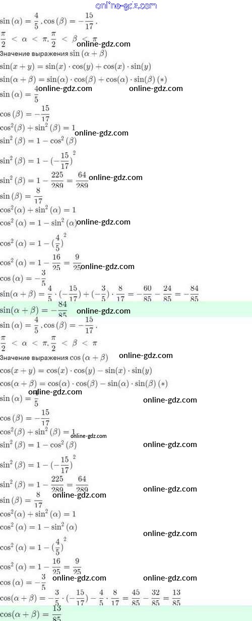 Готовые домашние задания по Алгебре за 10 класс Задачник Мордкович, Семёнов Базовый и углубленный уровень 2017 - §24. Синус и косинус суммы и разности аргументов 24.31