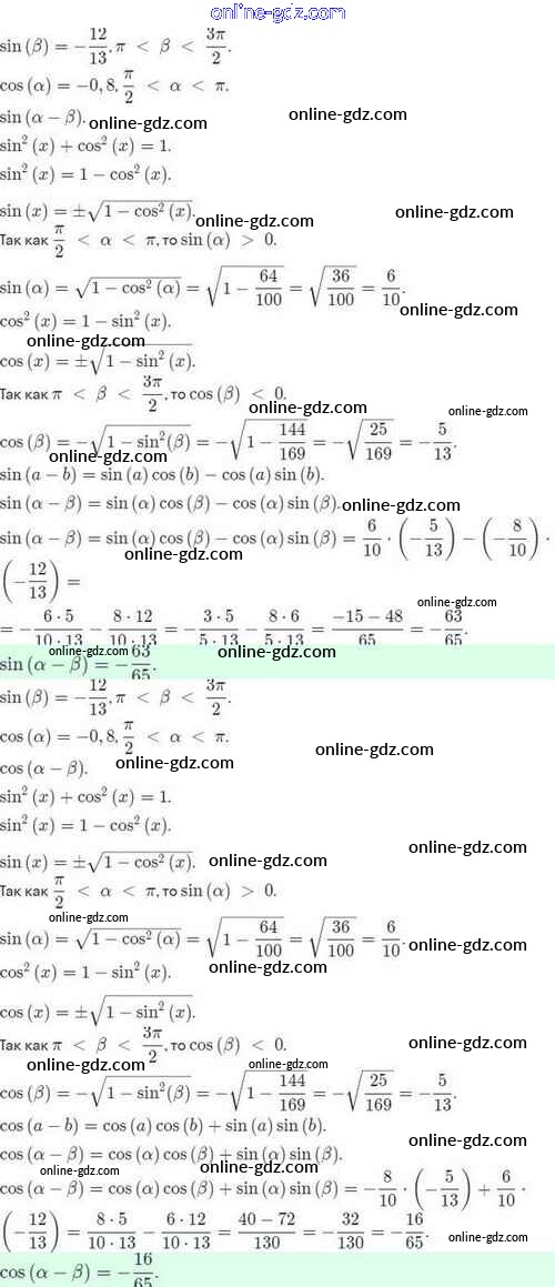 Готовые домашние задания по Алгебре за 10 класс Задачник Мордкович, Семёнов Базовый и углубленный уровень 2017 - §24. Синус и косинус суммы и разности аргументов 24.36