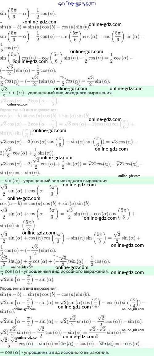 Готовые домашние задания по Алгебре за 10 класс Задачник Мордкович, Семёнов Базовый и углубленный уровень 2017 - §24. Синус и косинус суммы и разности аргументов 24.4