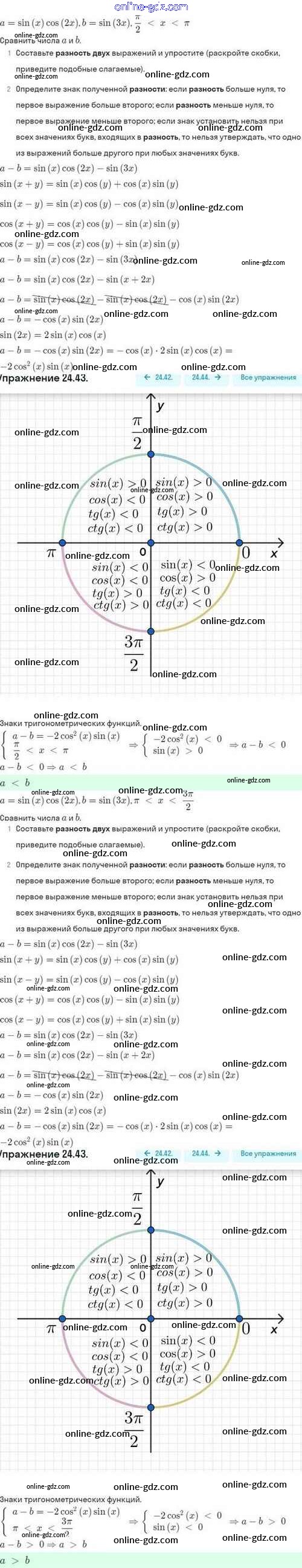 Готовые домашние задания по Алгебре за 10 класс Задачник Мордкович, Семёнов Базовый и углубленный уровень 2017 - §24. Синус и косинус суммы и разности аргументов 24.43