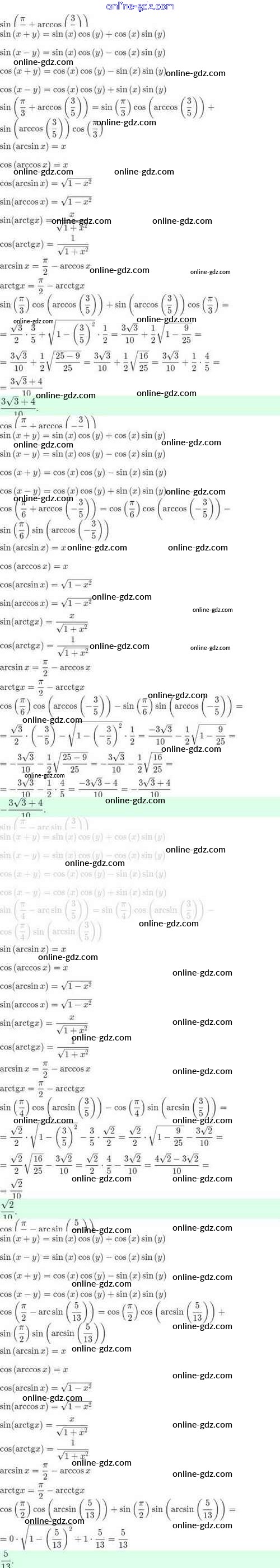 Готовые домашние задания по Алгебре за 10 класс Задачник Мордкович, Семёнов Базовый и углубленный уровень 2017 - §24. Синус и косинус суммы и разности аргументов 24.49
