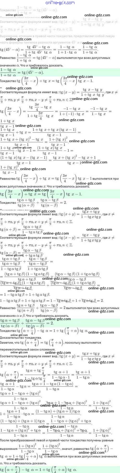 Готовые домашние задания по Алгебре за 10 класс Задачник Мордкович, Семёнов Базовый и углубленный уровень 2017 - §25. Тангенс суммы и разности аргументов 25.5