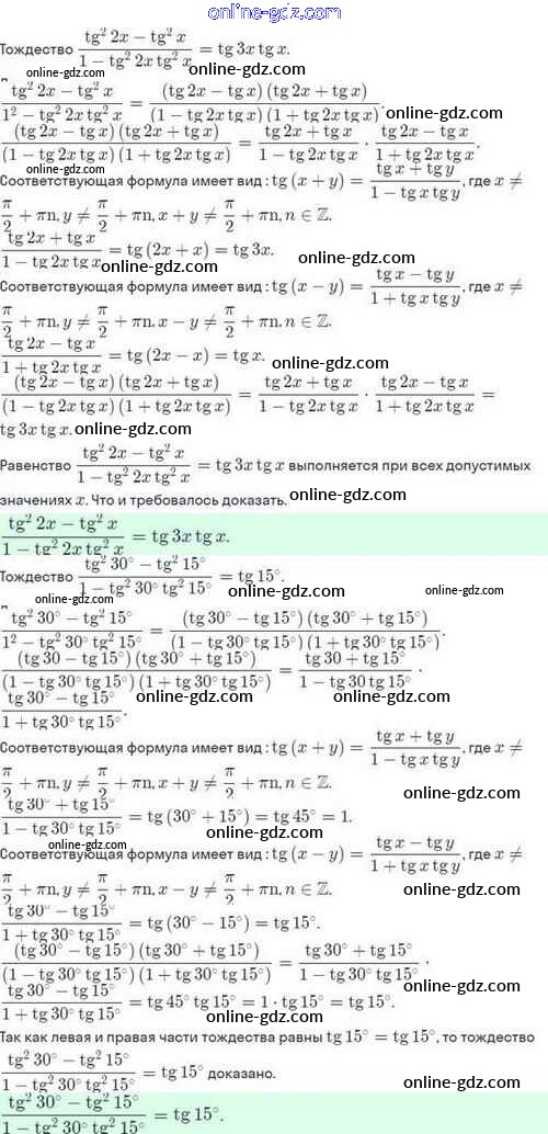 Готовые домашние задания по Алгебре за 10 класс Задачник Мордкович, Семёнов Базовый и углубленный уровень 2017 - §25. Тангенс суммы и разности аргументов 25.7