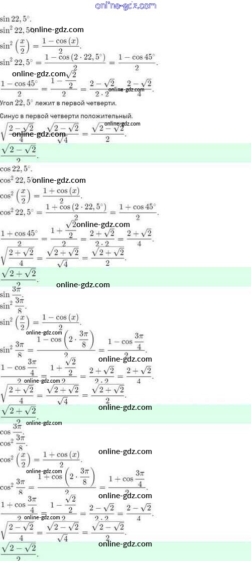 Готовые домашние задания по Алгебре за 10 класс Задачник Мордкович, Семёнов Базовый и углубленный уровень 2017 - §27. Формулы двойного аргумента. Формулы понижения степени 27.19