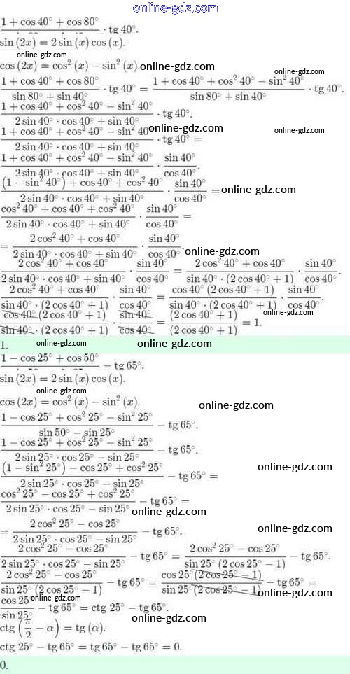 Готовые домашние задания по Алгебре за 10 класс Задачник Мордкович, Семёнов Базовый и углубленный уровень 2017 - §27. Формулы двойного аргумента. Формулы понижения степени 27.21