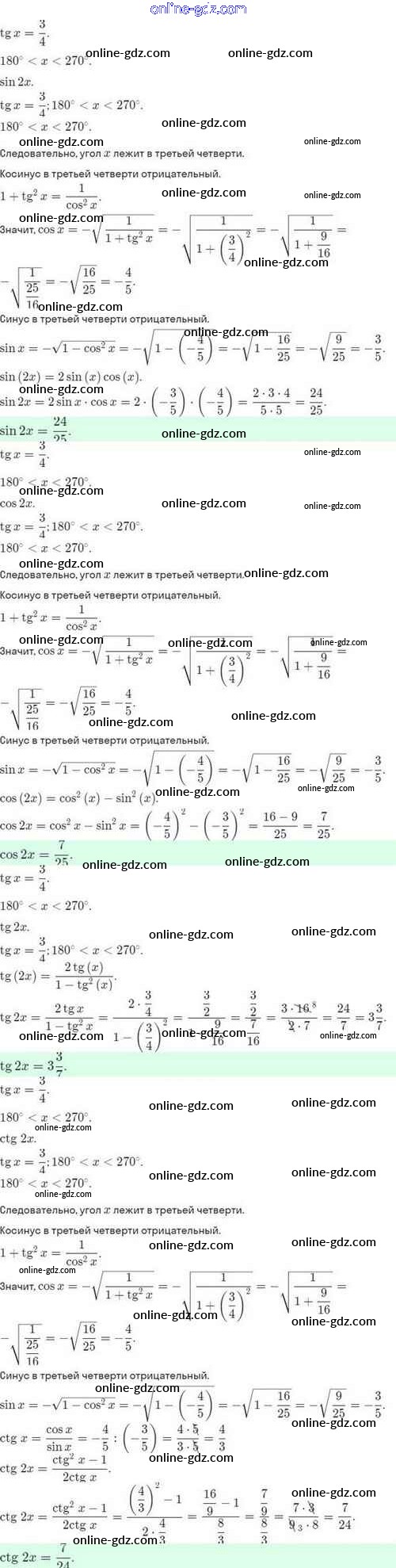 Готовые домашние задания по Алгебре за 10 класс Задачник Мордкович, Семёнов Базовый и углубленный уровень 2017 - §27. Формулы двойного аргумента. Формулы понижения степени 27.29