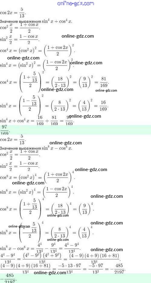 Готовые домашние задания по Алгебре за 10 класс Задачник Мордкович, Семёнов Базовый и углубленный уровень 2017 - §27. Формулы двойного аргумента. Формулы понижения степени 27.36