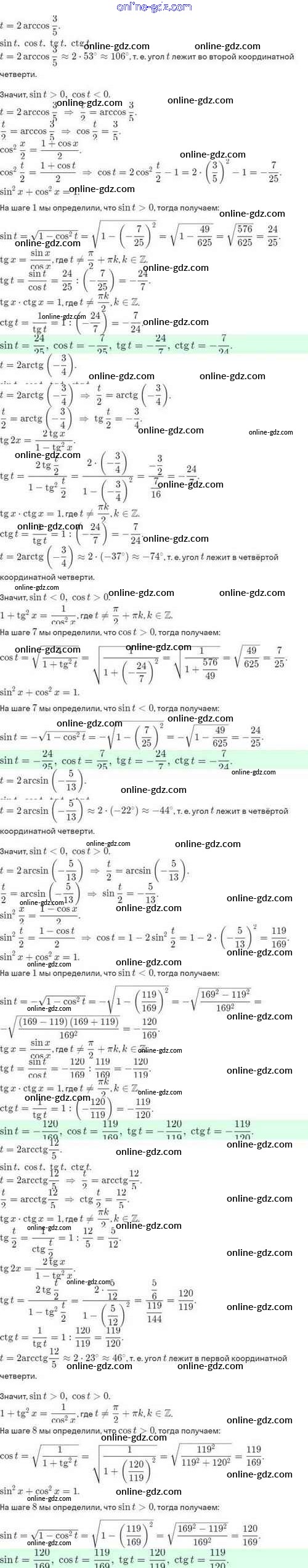 Готовые домашние задания по Алгебре за 10 класс Задачник Мордкович, Семёнов Базовый и углубленный уровень 2017 - §27. Формулы двойного аргумента. Формулы понижения степени 27.44