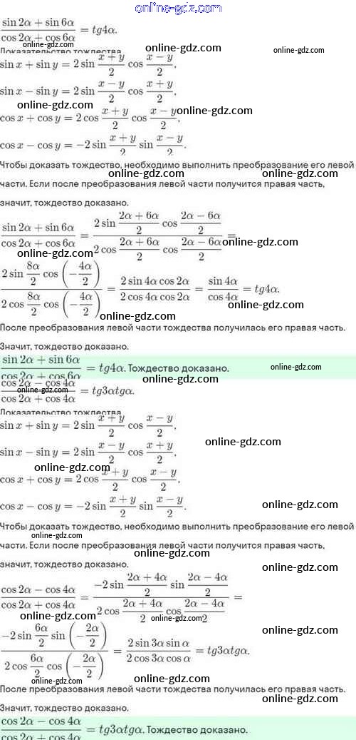Готовые домашние задания по Алгебре за 10 класс Задачник Мордкович, Семёнов Базовый и углубленный уровень 2017 - §28. Преобразование суммы тригонометрических функций в произведение 28.10