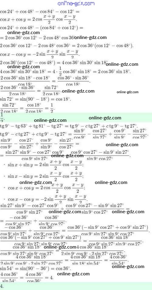 Готовые домашние задания по Алгебре за 10 класс Задачник Мордкович, Семёнов Базовый и углубленный уровень 2017 - §28. Преобразование суммы тригонометрических функций в произведение 28.17