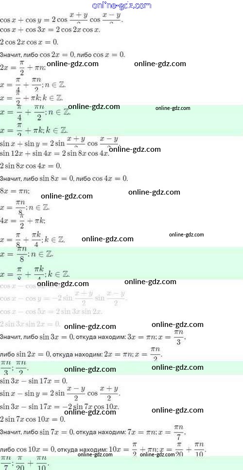 Готовые домашние задания по Алгебре за 10 класс Задачник Мордкович, Семёнов Базовый и углубленный уровень 2017 - §28. Преобразование суммы тригонометрических функций в произведение 28.26