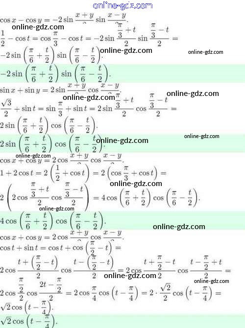 Готовые домашние задания по Алгебре за 10 класс Задачник Мордкович, Семёнов Базовый и углубленный уровень 2017 - §28. Преобразование суммы тригонометрических функций в произведение 28.7