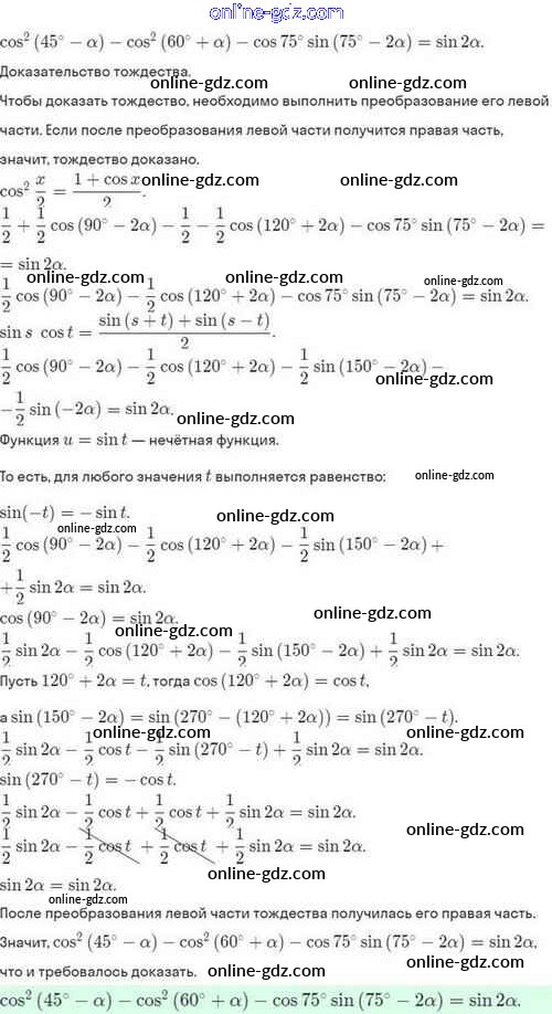 Готовые домашние задания по Алгебре за 10 класс Задачник Мордкович, Семёнов Базовый и углубленный уровень 2017 - §29. Преобразование произведения тригонометрических функций в сумму 29.10