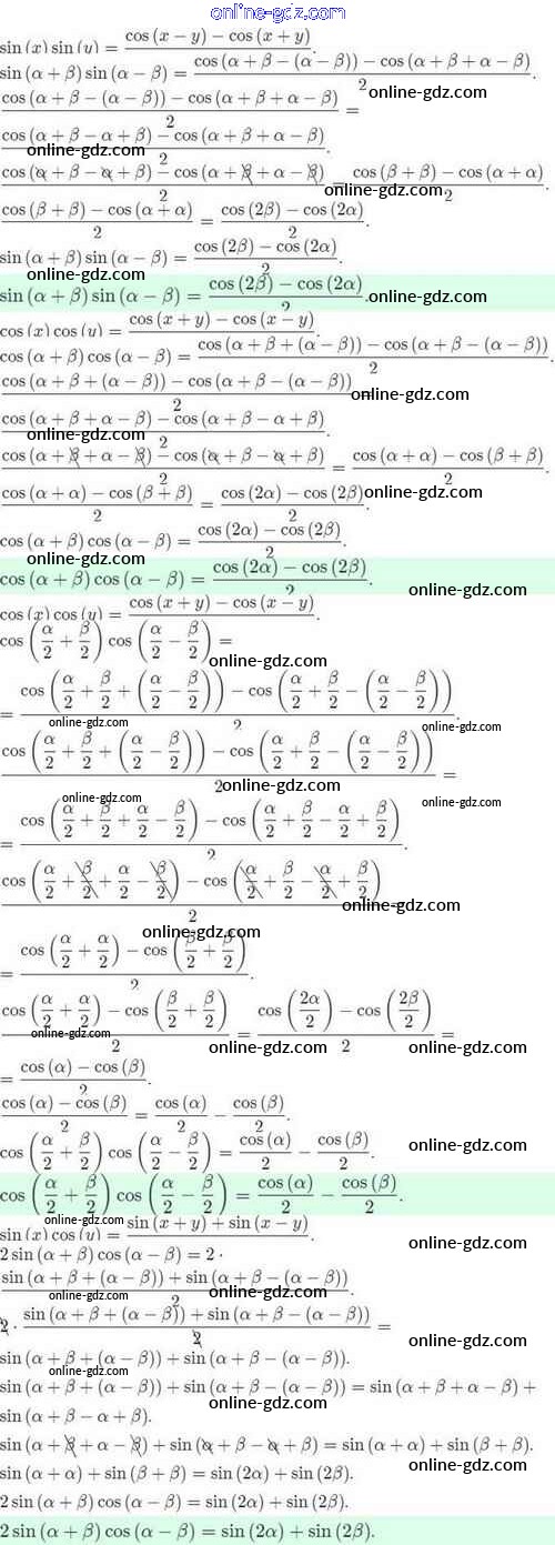 Готовые домашние задания по Алгебре за 10 класс Задачник Мордкович, Семёнов Базовый и углубленный уровень 2017 - §29. Преобразование произведения тригонометрических функций в сумму 29.2