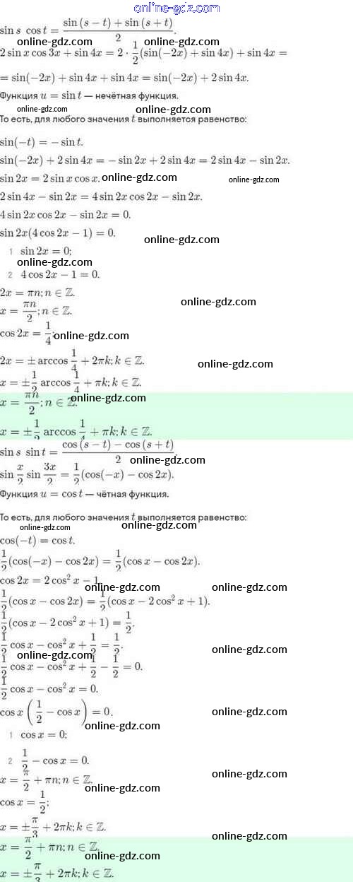 Готовые домашние задания по Алгебре за 10 класс Задачник Мордкович, Семёнов Базовый и углубленный уровень 2017 - §29. Преобразование произведения тригонометрических функций в сумму 29.22