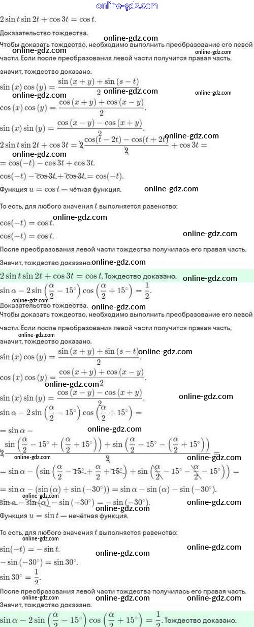 Готовые домашние задания по Алгебре за 10 класс Задачник Мордкович, Семёнов Базовый и углубленный уровень 2017 - §29. Преобразование произведения тригонометрических функций в сумму 29.7