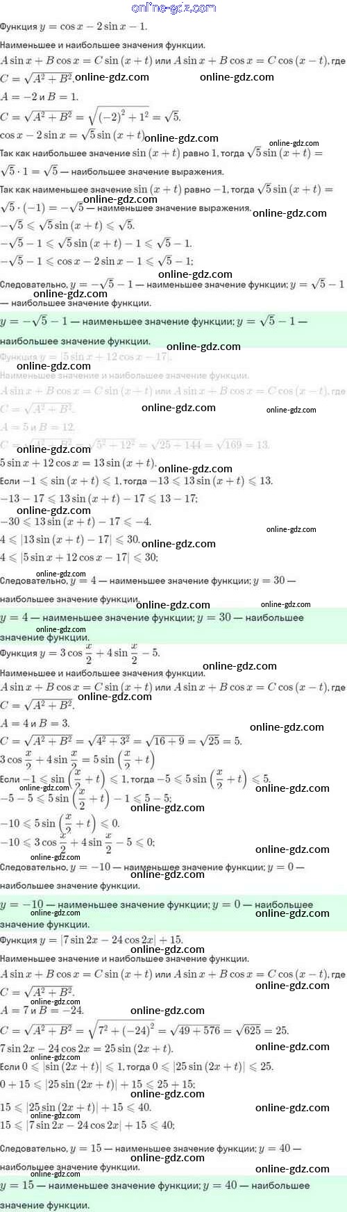 Готовые домашние задания по Алгебре за 10 класс Задачник Мордкович, Семёнов Базовый и углубленный уровень 2017 - §30. Преобразование выражения Asinx+Bcosx к виду Csin(x+t) 30.10