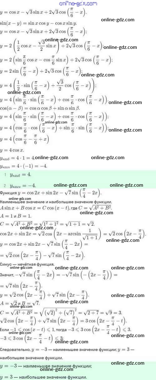 Готовые домашние задания по Алгебре за 10 класс Задачник Мордкович, Семёнов Базовый и углубленный уровень 2017 - §30. Преобразование выражения Asinx+Bcosx к виду Csin(x+t) 30.11