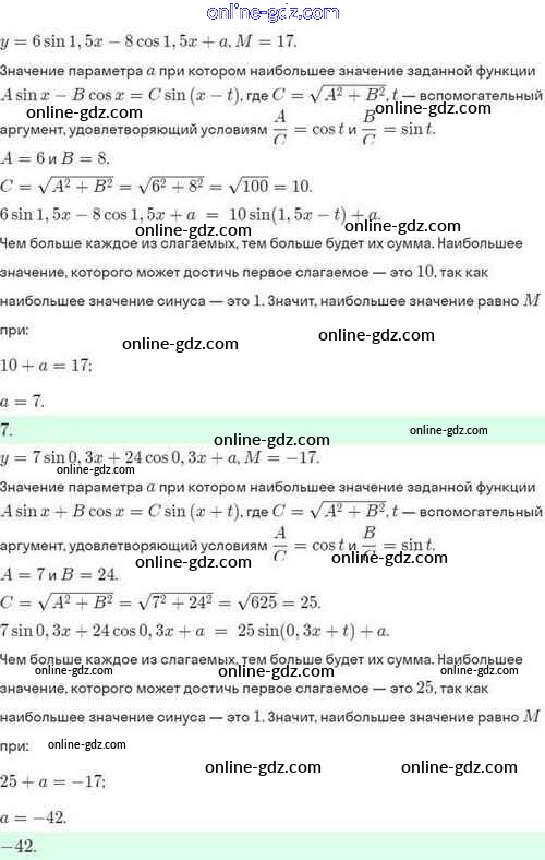 Готовые домашние задания по Алгебре за 10 класс Задачник Мордкович, Семёнов Базовый и углубленный уровень 2017 - §30. Преобразование выражения Asinx+Bcosx к виду Csin(x+t) 30.12