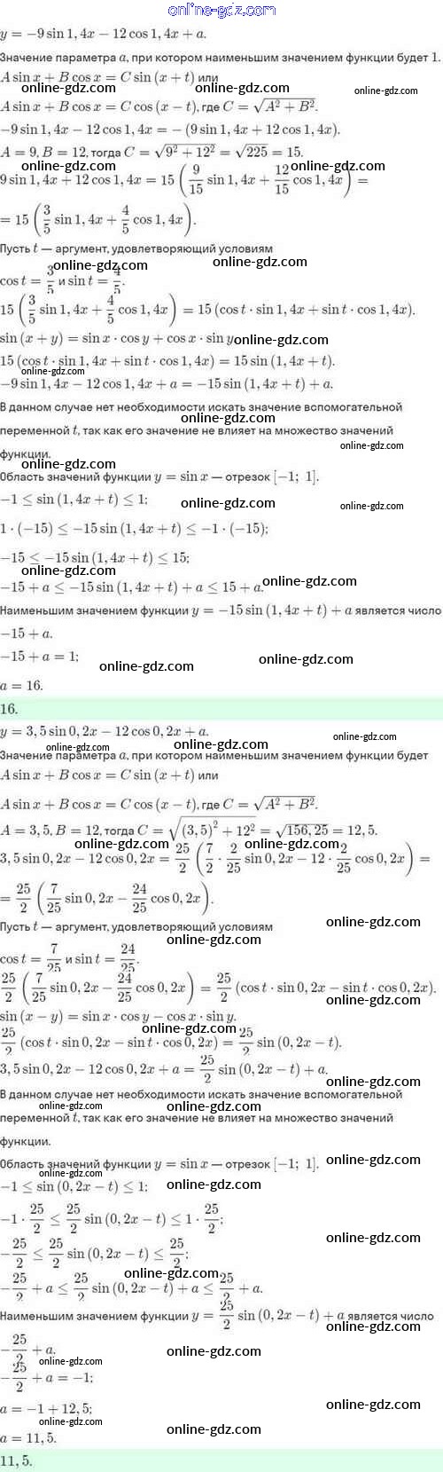 Готовые домашние задания по Алгебре за 10 класс Задачник Мордкович, Семёнов Базовый и углубленный уровень 2017 - §30. Преобразование выражения Asinx+Bcosx к виду Csin(x+t) 30.13
