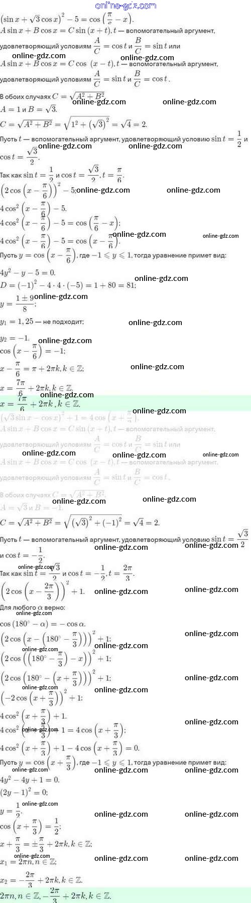 Готовые домашние задания по Алгебре за 10 класс Задачник Мордкович, Семёнов Базовый и углубленный уровень 2017 - §30. Преобразование выражения Asinx+Bcosx к виду Csin(x+t) 30.20