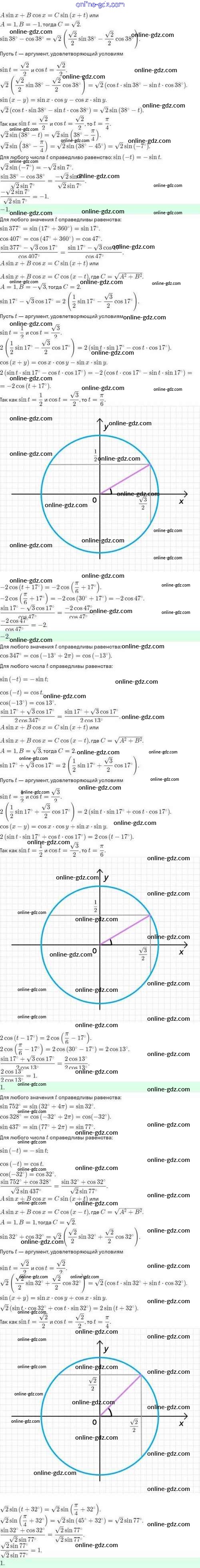 Готовые домашние задания по Алгебре за 10 класс Задачник Мордкович, Семёнов Базовый и углубленный уровень 2017 - §30. Преобразование выражения Asinx+Bcosx к виду Csin(x+t) 30.5