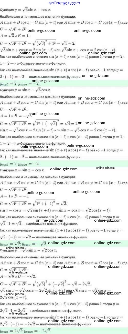 Готовые домашние задания по Алгебре за 10 класс Задачник Мордкович, Семёнов Базовый и углубленный уровень 2017 - §30. Преобразование выражения Asinx+Bcosx к виду Csin(x+t) 30.6