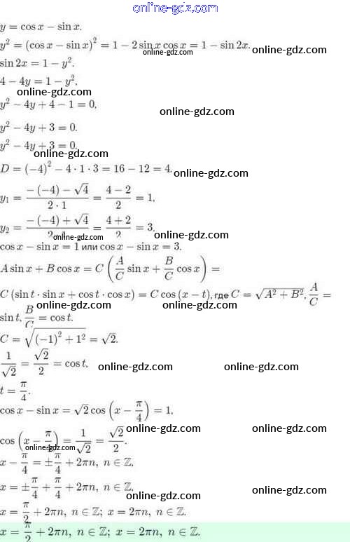 Готовые домашние задания по Алгебре за 10 класс Задачник Мордкович, Семёнов Базовый и углубленный уровень 2017 - §31. Методы решения тригонометрических уравнений 31.20