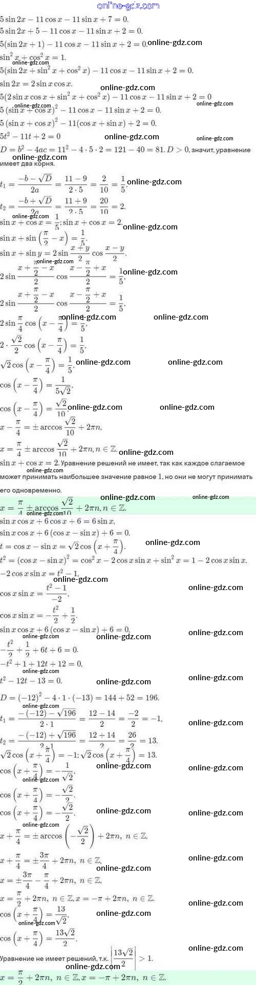Готовые домашние задания по Алгебре за 10 класс Задачник Мордкович, Семёнов Базовый и углубленный уровень 2017 - §31. Методы решения тригонометрических уравнений 31.21