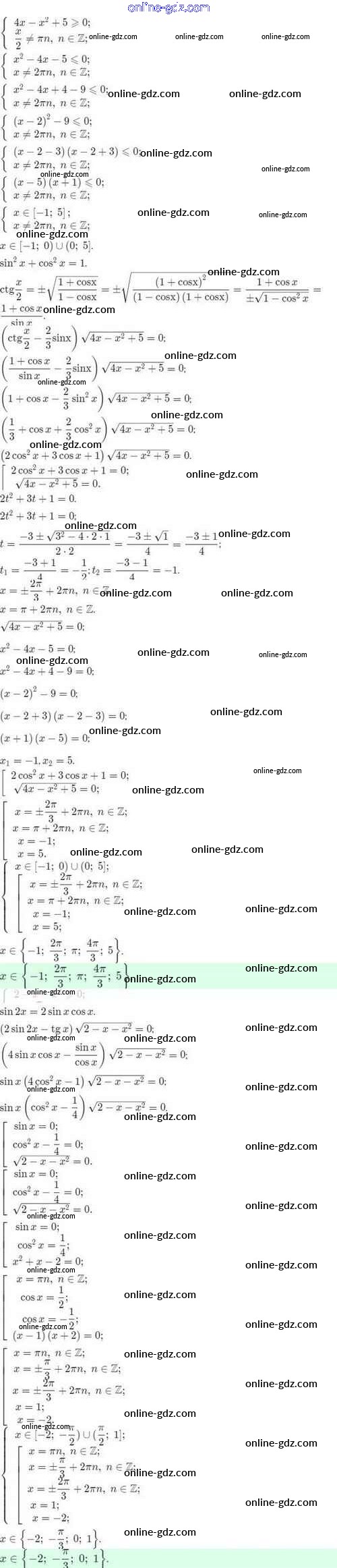 Готовые домашние задания по Алгебре за 10 класс Задачник Мордкович, Семёнов Базовый и углубленный уровень 2017 - §31. Методы решения тригонометрических уравнений 31.42