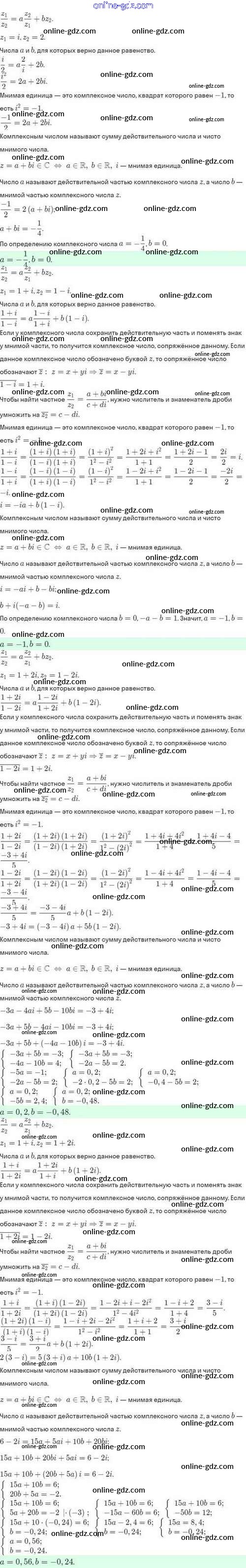 Готовые домашние задания по Алгебре за 10 класс Задачник Мордкович, Семёнов Базовый и углубленный уровень 2017 - §32. Комплексные числа и арифметические операции над ними 32.28