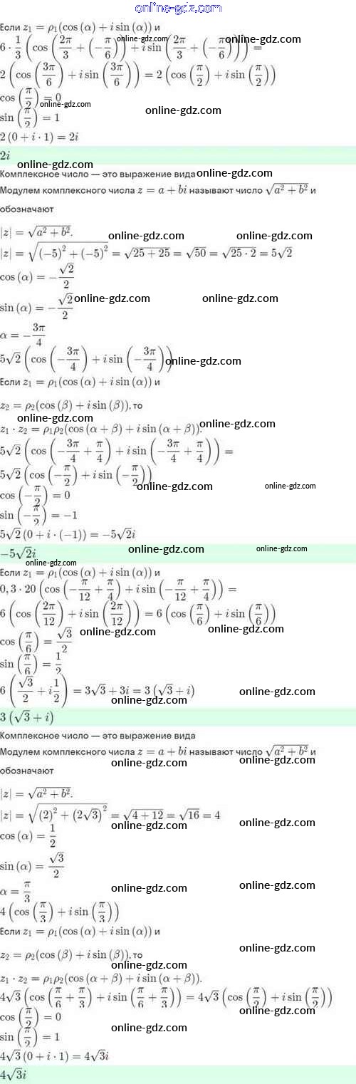 Готовые домашние задания по Алгебре за 10 класс Задачник Мордкович, Семёнов Базовый и углубленный уровень 2017 - §34. Тригонометрическая формула записи комплексного числа 34.29