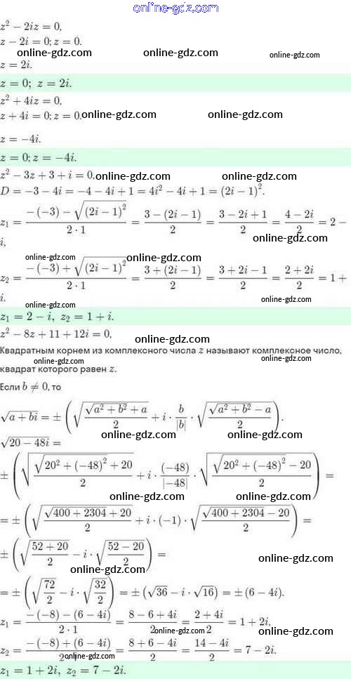 Готовые домашние задания по Алгебре за 10 класс Задачник Мордкович, Семёнов Базовый и углубленный уровень 2017 - §35. Комплексные числа и квадратные уравнения 35.18