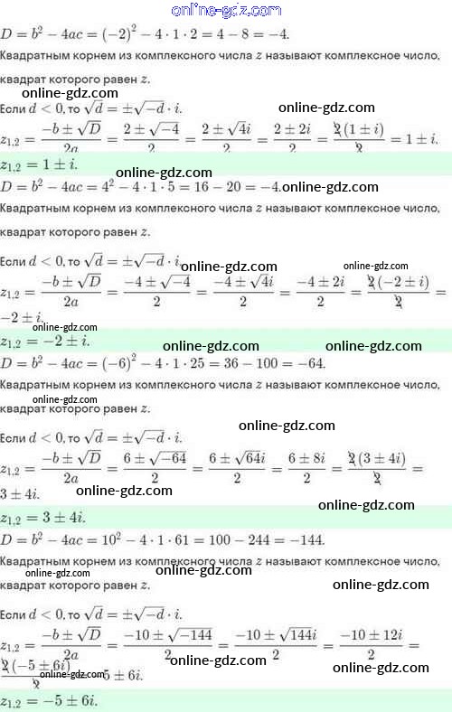Готовые домашние задания по Алгебре за 10 класс Задачник Мордкович, Семёнов Базовый и углубленный уровень 2017 - §35. Комплексные числа и квадратные уравнения 35.7