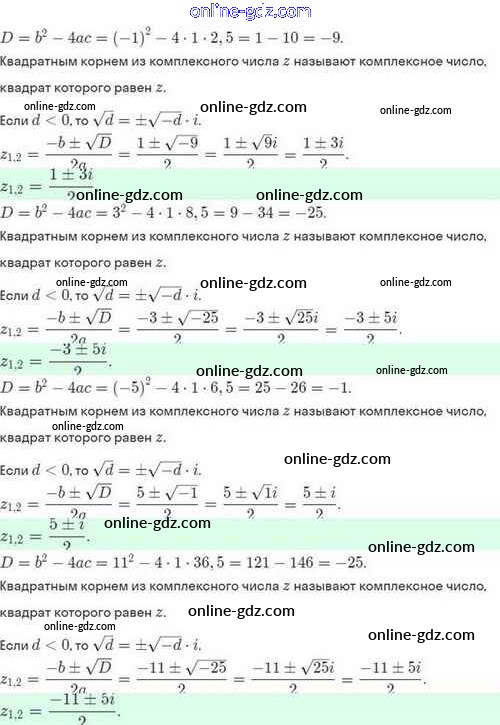 Готовые домашние задания по Алгебре за 10 класс Задачник Мордкович, Семёнов Базовый и углубленный уровень 2017 - §35. Комплексные числа и квадратные уравнения 35.8
