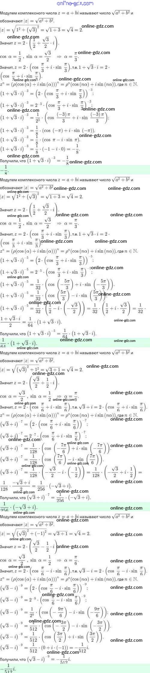 Готовые домашние задания по Алгебре за 10 класс Задачник Мордкович, Семёнов Базовый и углубленный уровень 2017 - §36. Возведение комплексного числа в степень, извлечение кубического корня из комплексного числа 36.12