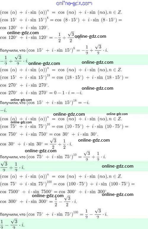 Готовые домашние задания по Алгебре за 10 класс Задачник Мордкович, Семёнов Базовый и углубленный уровень 2017 - §36. Возведение комплексного числа в степень, извлечение кубического корня из комплексного числа 36.7