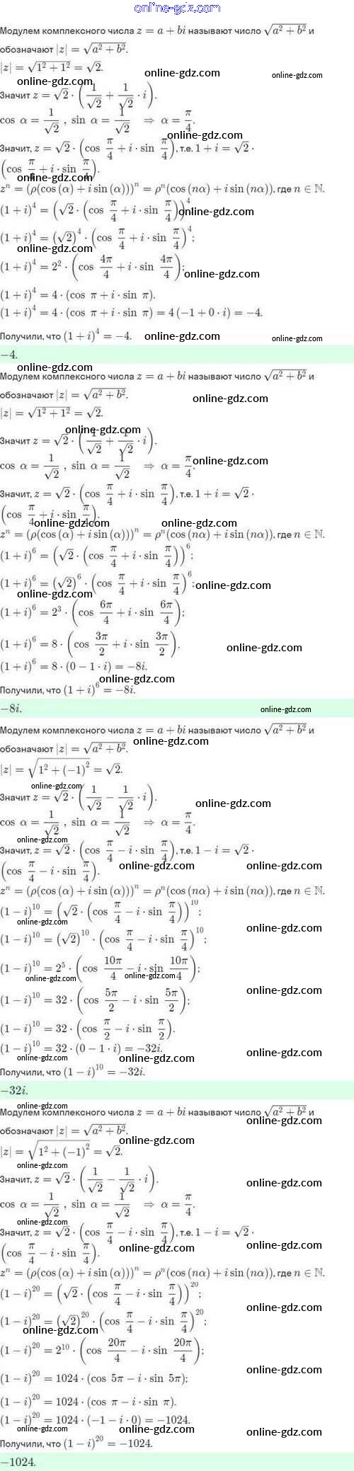 Готовые домашние задания по Алгебре за 10 класс Задачник Мордкович, Семёнов Базовый и углубленный уровень 2017 - §36. Возведение комплексного числа в степень, извлечение кубического корня из комплексного числа 36.8
