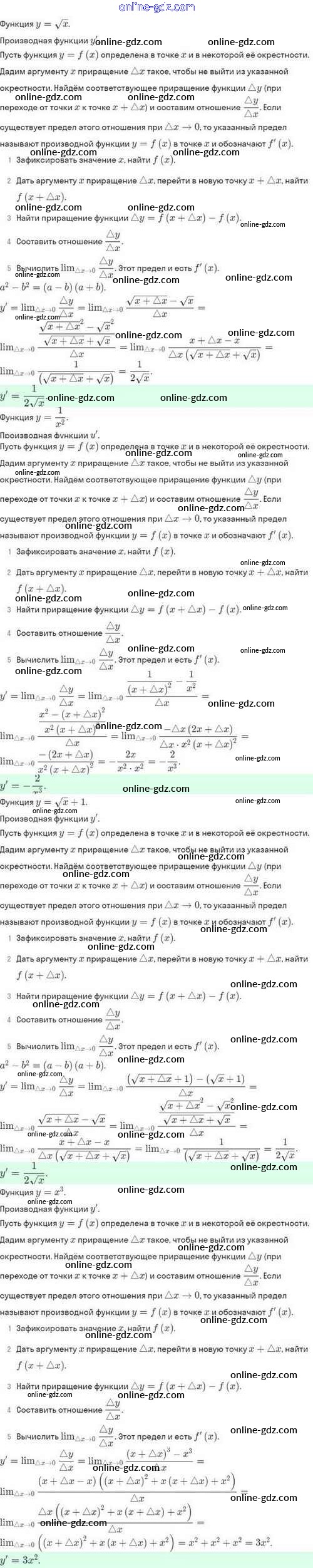 Готовые домашние задания по Алгебре за 10 класс Задачник Мордкович, Семёнов Базовый и углубленный уровень 2017 - §40. Определение производной 40.10