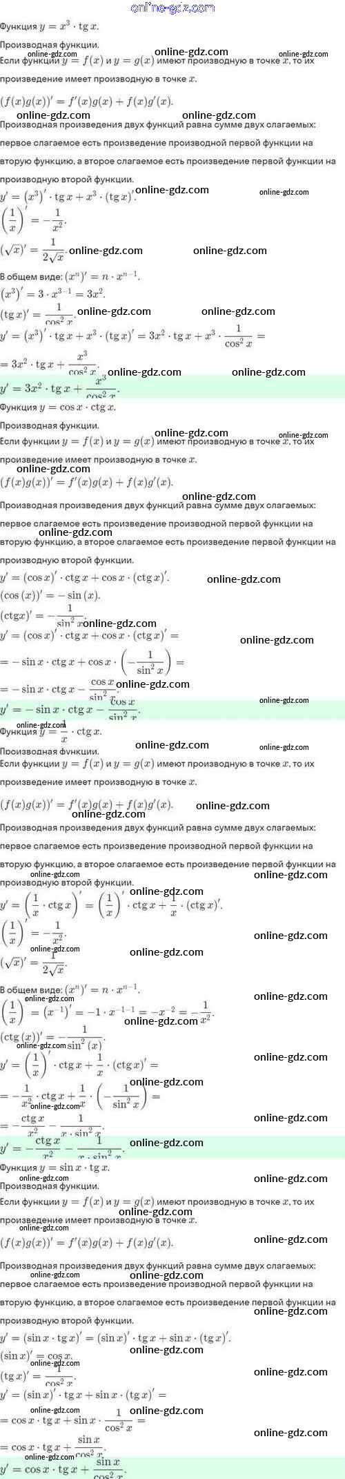 Готовые домашние задания по Алгебре за 10 класс Задачник Мордкович, Семёнов Базовый и углубленный уровень 2017 - §41. Вычисление производных 41.16
