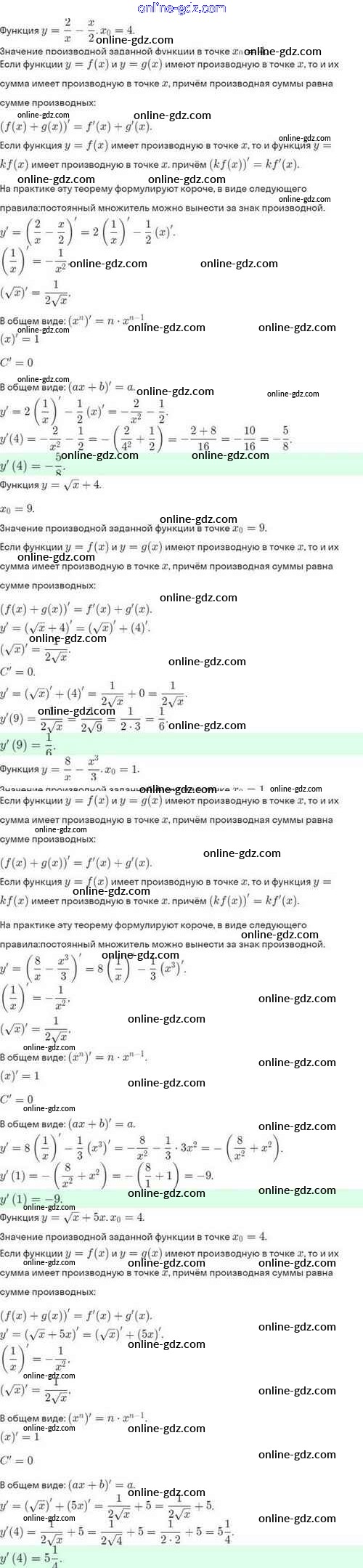 Готовые домашние задания по Алгебре за 10 класс Задачник Мордкович, Семёнов Базовый и углубленный уровень 2017 - §41. Вычисление производных 41.26