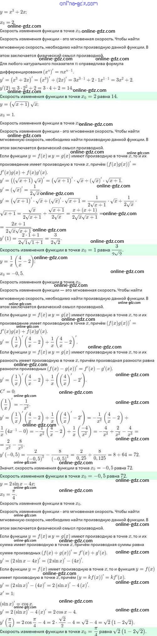 Готовые домашние задания по Алгебре за 10 класс Задачник Мордкович, Семёнов Базовый и углубленный уровень 2017 - §41. Вычисление производных 41.34