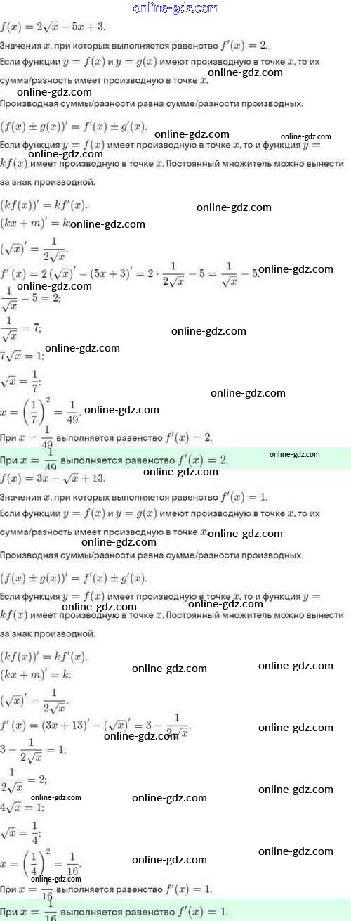 Готовые домашние задания по Алгебре за 10 класс Задачник Мордкович, Семёнов Базовый и углубленный уровень 2017 - §41. Вычисление производных 41.48