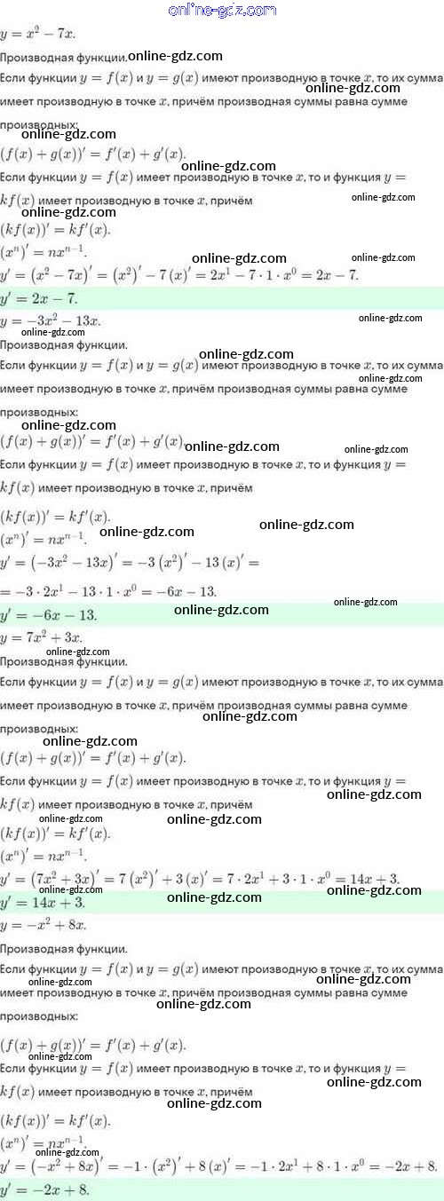 Готовые домашние задания по Алгебре за 10 класс Задачник Мордкович, Семёнов Базовый и углубленный уровень 2017 - §41. Вычисление производных 41.5