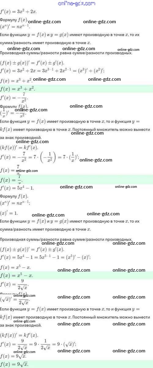 Готовые домашние задания по Алгебре за 10 класс Задачник Мордкович, Семёнов Базовый и углубленный уровень 2017 - §41. Вычисление производных 41.59